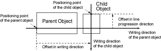 Figure 8 - Offsets in the case where writing direction of the parent object is left-to-right and rotation is 0 degree