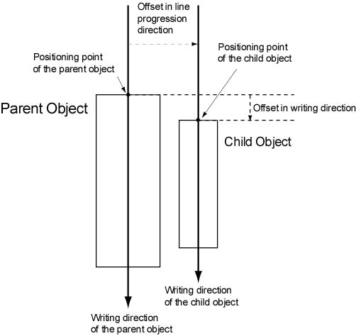 Figure 10 - Offsets in the case where writing direction of the parent object is top-to-bottom and rotation is 0 degree
