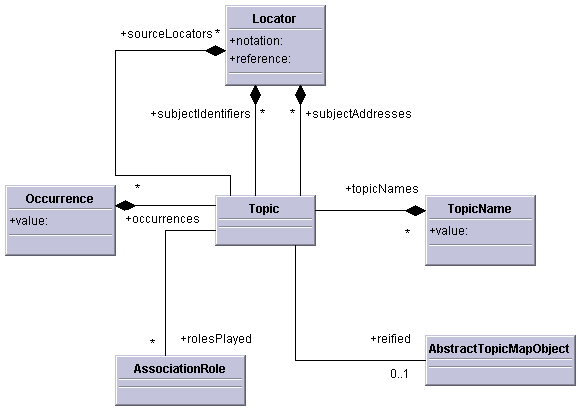 The metamodel used in this document is the same as that used by the XML Information Set [infoset]. A topic map's information set consists of a number of information items, which are abstract representations of some part of the topic map. Every information item is an instance of some information item type, which specifies a number of named properties which the information item must have. Throughout this Technical Specification the term "information item" refers to the information item types defined in this model, while information items of particular types are referred to as "topic items", "topic name items", and so on.