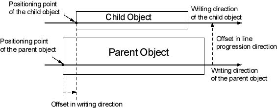 Figure2. Concept of offsets - Writing direction of the parent object is left-to-right, rotation is 270 degree