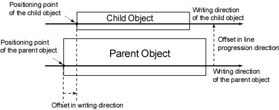 Figure 8 - Offsets in the case where writing direction of the parent object is left-to-right and rotation is 0 degree