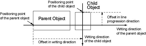 Figure2. Concept of offsets - Writing direction of the parent object is left-to-right, rotation is 270 degree